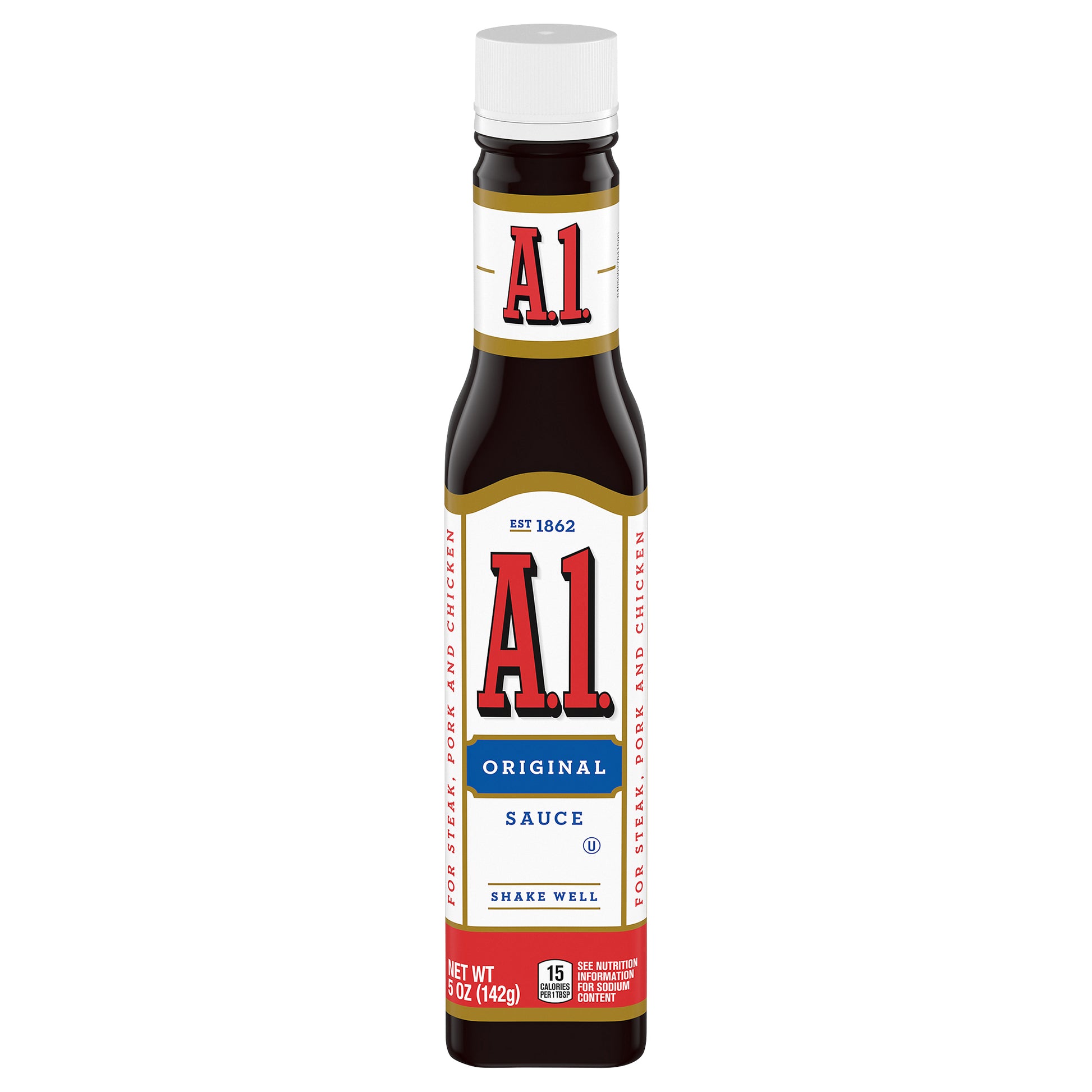 Transform your meals with the bold flavors of A1. Our Original Sauce is the perfect complement to burgers, steak, chicken, pork, vegetables and more! A1 Original Steak Sauce combines tomatoes, crushed oranges, garlic and an intricate mix of spices for a zesty taste that goes with almost anything. Use our tangy sauce as a marinade, brush it on while grilling your preferred protein or pour it on your entrée for a boost of flavor. Ideal as a dipping sauce, you can also try adding our delicious sauce to your family’s recipes. Each 5-ounce glass bottle is resealable , and its smaller size makes it great to take with you for bold flavor any time, anywhere. Whether you use it as a sauce or a marinade, A1 adds delicious flavor to all of your family favorites.