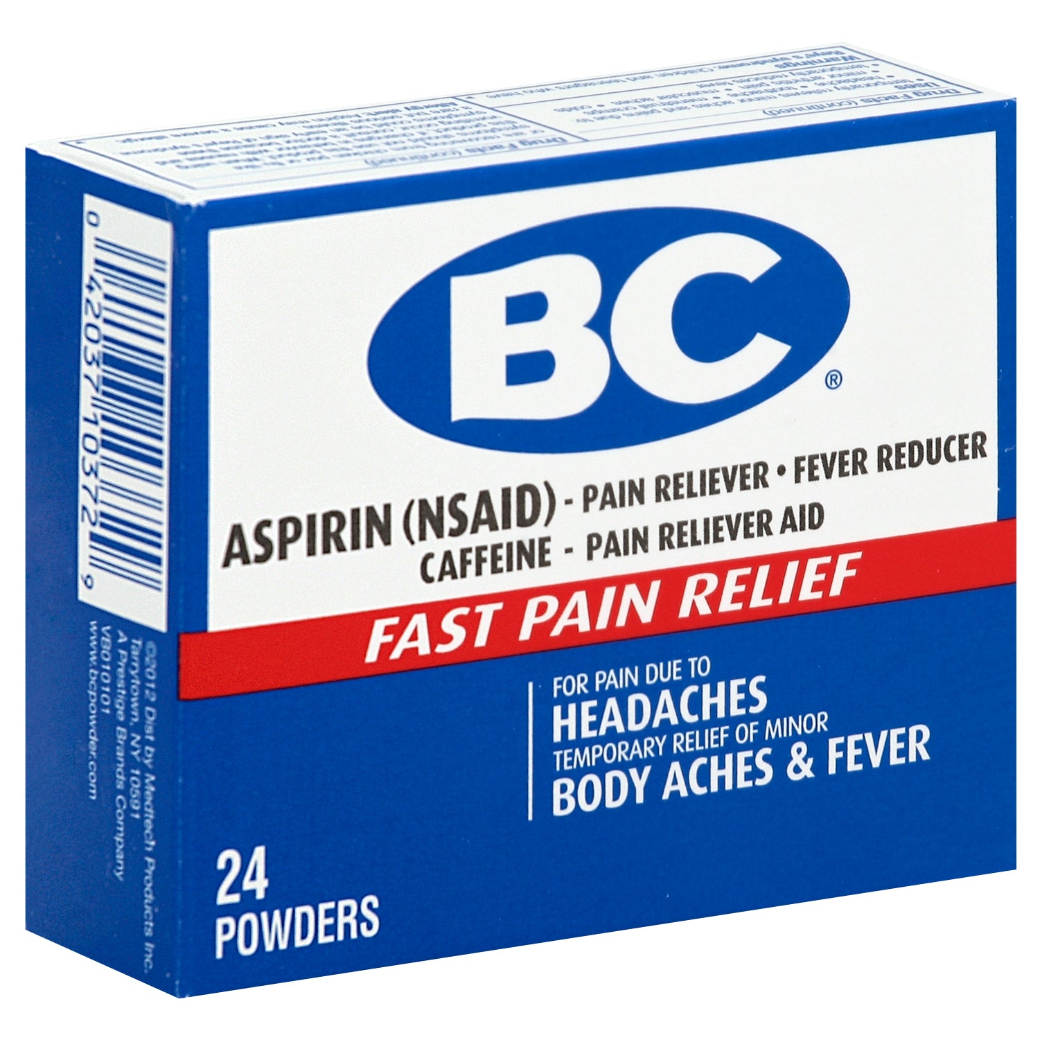 Other Information: Each powder contains: potassium 55 mg. Store below 77 degrees F (25 degrees C). Misc: Aspirin (NSAID) - pain reliever - fever reducer. Caffeine - pain reliever aid. For pain due to headaches. Temporary relief of minor body aches & fever. www.bcpowder.com. A Prestige Brands company. Questions or comments? 1-866-255-5197 (English/Spanish) weekdays.
