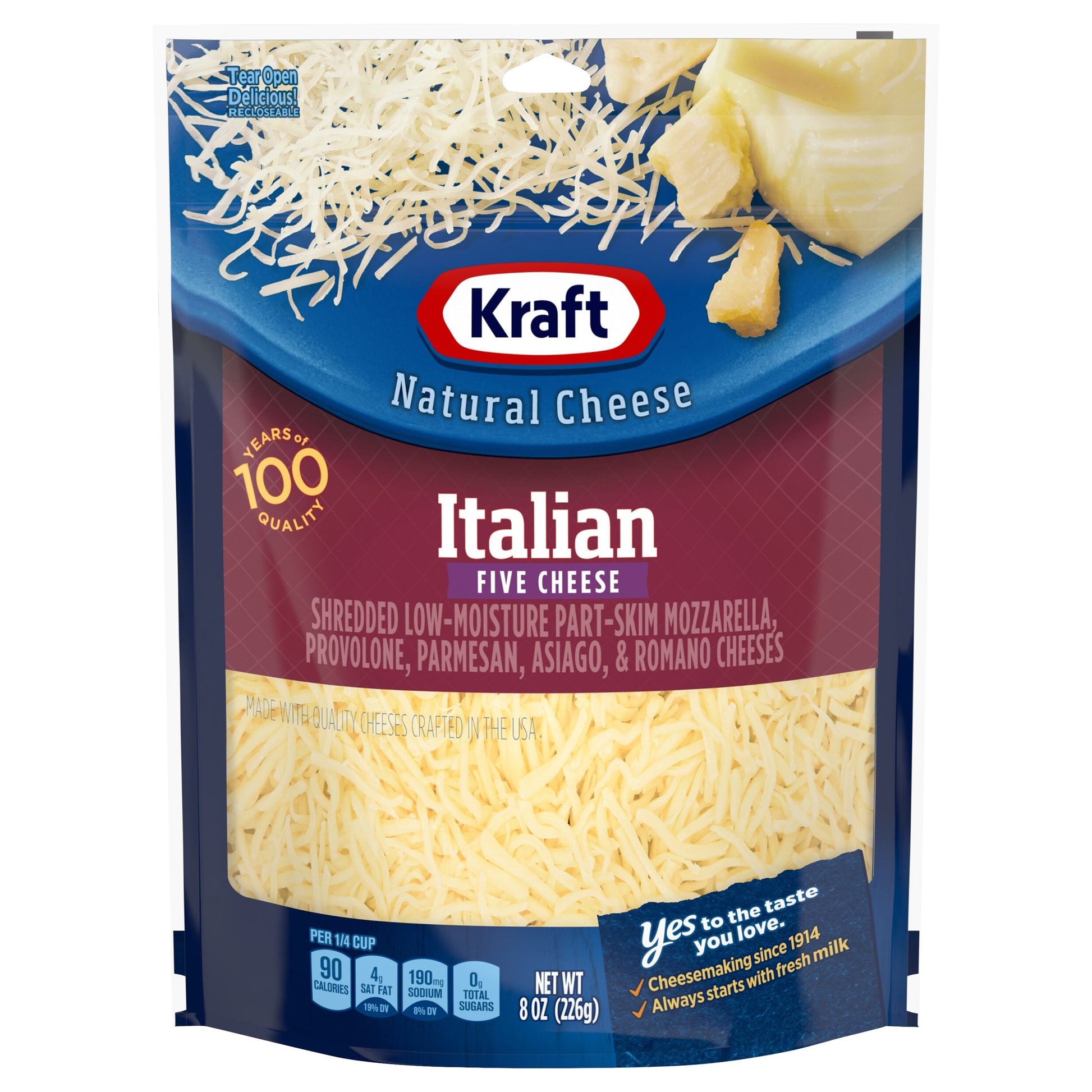 Kraft Italian Five Cheese Blend Shredded Cheese, 8 oz Bag