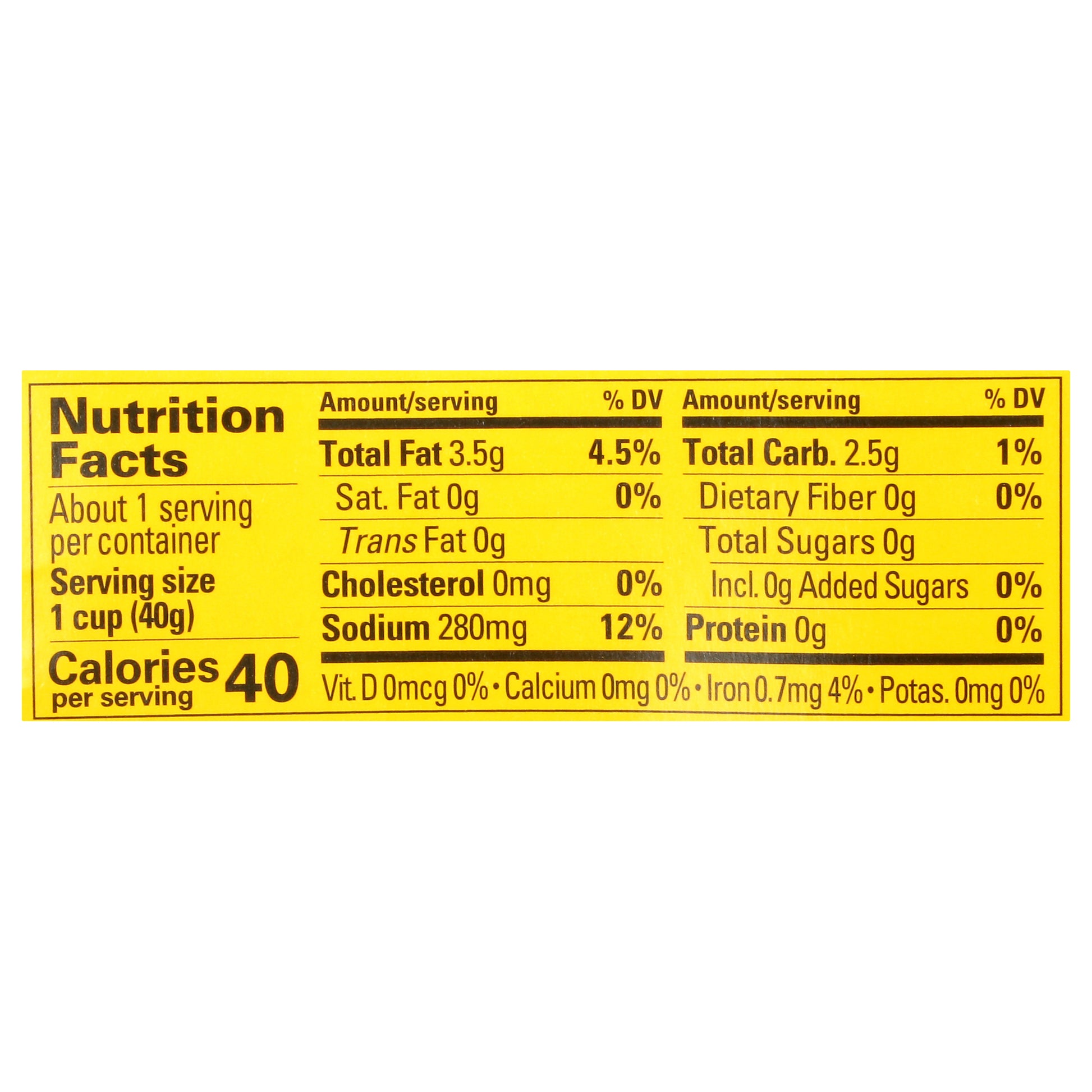 40 calories per cup. Vegan. Gluten free. Non GMO. No genetically engineered ingredients. 100% California grown. No liquid. Sea salt. Fresh new look. The perfect topper. Olives are a plant-based, saturated-fat-free food. No artificially preservatives or additives. No major food allergens. Cups in this package are not labeled for individual sale. Guaranteed quality. olives.com. Facebook. Instagram. Twitter. Please provide code from cup with product correspondence. Call 866-4837, M-F, 8-5 PT. No BPA.