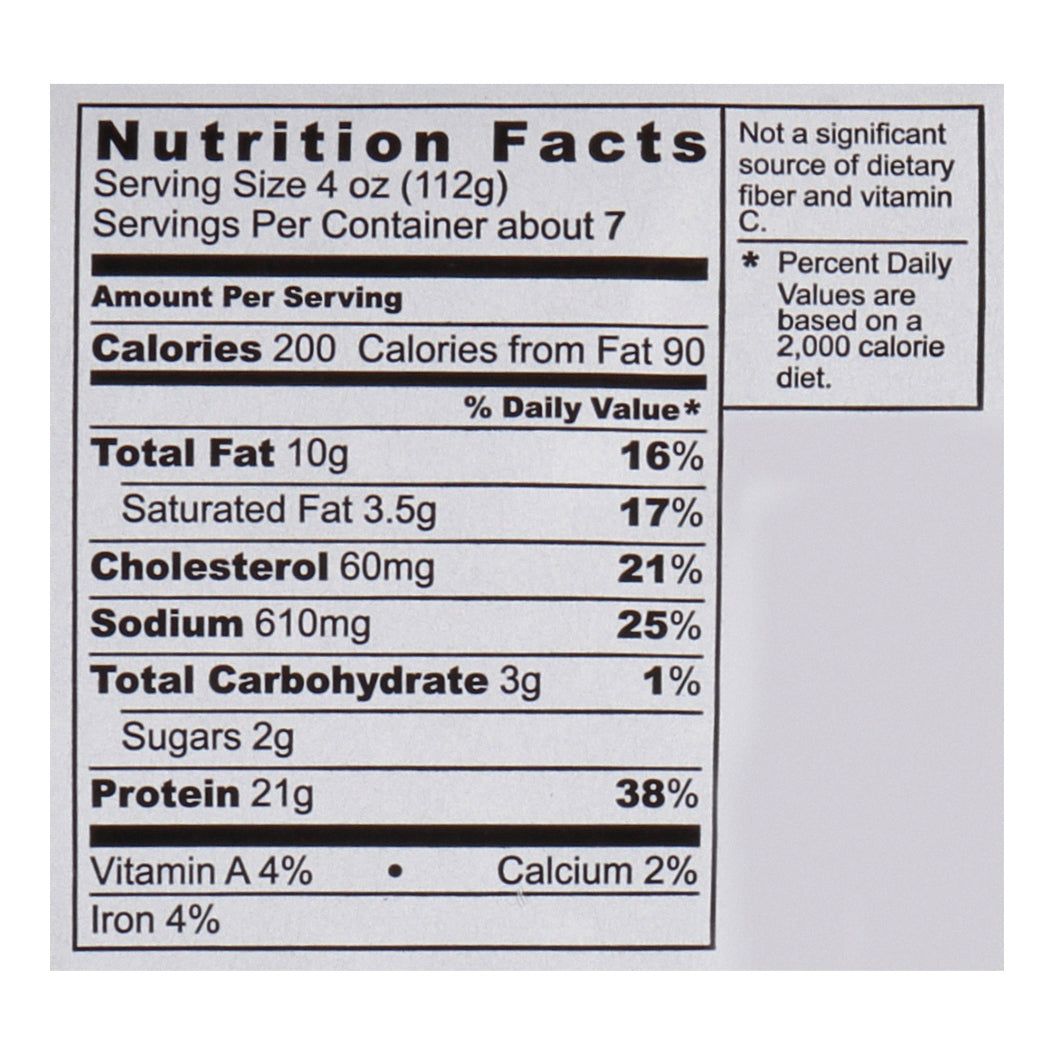 Pork loin filet basted with up to 16% added solution of water, potassium chloride, vinegar, natural flavor.